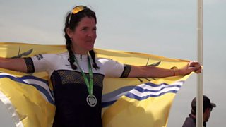 Fhuair Kerry Nic a' Phì an dà rna bonn airgid aice san rèis baidhsagal beinne.