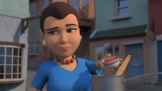 Mae Mama Polenta a Sam yn cystadlu i weld pwy gall greu'r saws pasta gore, ond saws bas... (A)