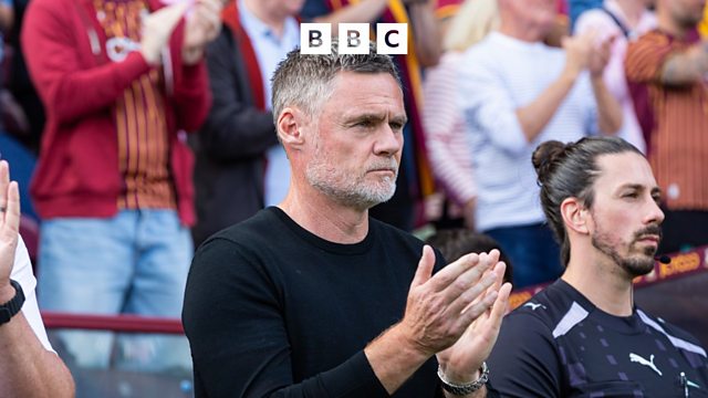 Bradford City manager Graham Alexander reacts as goals from Antoni Sarcevic and Bobby Pointon earn City a victory over Wycombe Wanderers.