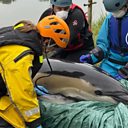 Dan Jarvis tells Julie Skentelbery about the rescue of a dolphin from a muddy creek.