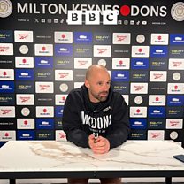 MK Dons Head coach Paul Warne talks to Luke Ashmead ahead of the home game against Crewe.