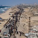 (Photo shows Crowds of Palestinians making their way up a narrow coastal road to Gaza's north. Credit: Haitham Imad/EPA)