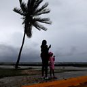 (Photo: A woman and a child stand along the Kingston waterfront as Hurricane Melissa approaches, in Kingston, Jamaica, October 27, 2025. Credit: REUTERS/Octavio Jones)