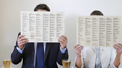 (Picture: A woman cover her face with a menu, Credit: Getty Images)