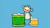 27/50 Bruno plays the big green drum and the little yellow drum. (R)