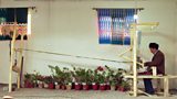 In China, a weaver uses a combination of handmade techniques and mechanised looms. (R)