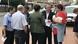 Andrew Peach hosts the Reading West candidates outside Battle Library along Oxford Road