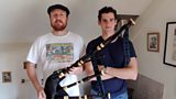 Eòghann MacEanraig a' còmhradh ri luchd-ciùil mu na h-innealan-ciùil aca. (R)