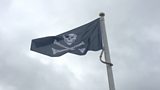 Charlie turns pirate as he raises the skull and crossbones over the Museum of Somerset.