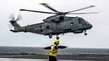 2/3 HMS Queen Elizabeth embarks on dangerous sea trials in the North Sea. (R)