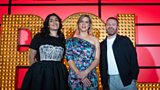 3/7 The magnificent Lou Sanders introduces comedians Celya AB and Neil Delamere to the stage. (R)