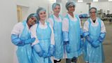 The kids head to a fish-processing factory in the north eastern port of Grimsby. (R)