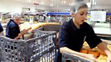 The kids' final stop is at one of the biggest free-range egg farms in the country. (R)