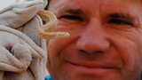 9/26 In Namibia, Steve gets up close to a vulture and a tiny but mighty spider. (R)