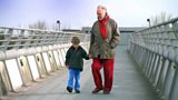 13/25 Papa Jim tells his grandson Leo why he got a medal for building a bridge across a river. (R)