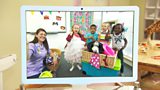 9/20 After playing some balloon games, Melody listens to Air on a G String by Bach. (R)