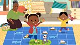 2/11 JoJo and Raya play snakes and ladders, but think it would be fun to make a new game. (R)