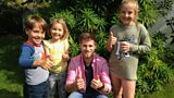Mae Seb3 ar ymweliad â'r ardd newydd mae Oli a Beth wedi'i chreu. Seb3 visits Oli and B... (A)