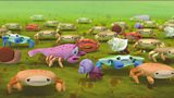 Mae'r Octonots ac ambell granc gwantan yn cael eu dal rhwng dwy garfan o anemoneau bygy... (A)