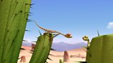 Anturiaethau Oscar y fadfall a'i ffrindiau yn yr anialwch chwilboeth. A cartoon followi... (A)