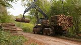 Mae angen dau gerbyd arbennig iawn i dorri a symud coed: cynhaeafwr a blaenwr. Fe'u gwe... (A)