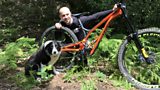 Mae beic mynydd y pencampwr Cymreig Emyr Davies yn werth £9,000, a mae ganddo straeon lu!