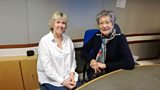 Beti George yn sgwrsio â Siân Tesni, uwch-ymgynghorydd addysg elusen CBM.