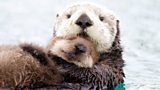 1/3 A mother sea otter nurses her baby through the chilly days of early spring. (R)