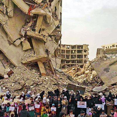 The heartbreaking stories of Syrians living and dying in besieged cities during the civil war. Over the last seven years as many as a million people in Syria lived under siege, 400,000 of them in Eastern Ghouta alone. Some were trapped for more than four years of bombardment, sniping and near starvation. The walls that stopped them fleeing also prevented many of their stories reaching the outside world. Over the course of the war, Mike Thomson has been using internet links and social media to hear from those in these isolated and often forgotten places, Many told Mike their stories as bombs shook the walls around them. The result is a picture of everyday life in some of the most dangerous and devastated places on earth. Yet amid the grim accounts are inspiring examples of resilience, courage and hope. Producer: Bob Howard