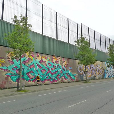 In February 2016 a controversial wall in Belfast was demolished. It was the first of over a hundred such structures across Northern Ireland set to disappear by 2023. Collectively, they’re known as peacelines. Some are just a few hundred yards long, others over three miles. Some are flimsy, rickety affairs, others are made of reinforced concrete, galvanised steel and razor wire. Depending on one’s personal view, they either divide or protect Catholic and Protestant communities from each other. Peacelines first appeared in Belfast in 1969, intended only as temporary structures. But they're still there today, steadfast symbols of the Troubles. What was it like growing up next to one of these walls? In Along the Peaceline, two Belfast-born writers, Maria Fusco and Glenn Patterson, each return to a peaceline they've known since childhood. Glenn revisits the Shankhill Road, an area of Belfast he got to know well as a boy on his way to see his aunt and uncle. Parts of the peaceline there have since become a tourist attraction. Meanwhile, Maria heads to the Ardoyne neighbourhood she grew up in, where the local peaceline was “a constant flashpoint for rioting”. It’s an evocative journey for both of them as they trace the length of their respective peacelines. They recall how these structures affected their lives during the Troubles and observe what's changed since. Reflecting on the then and now, Glenn and Maria bring historical fact and their own personal perspectives to help excavate these contested sites and try to gauge the overall effect peacelines have had on today’s much changed Belfast. Photo: Conor Garrett Producer: Dan Shepherd A Far Shoreline production for ѿý Radio 4