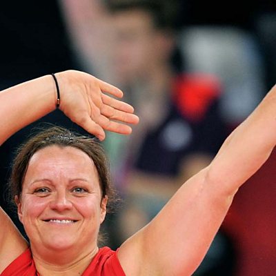 7/7 survivor Martine Wright talks to Gordon Farquhar after competing in the opening sitting volleyball match for Great Britain. The team lost 3-0 to European champions Ukraine.