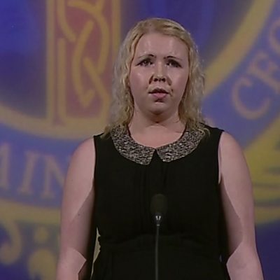 Alison NicAnnain a' seinn aig farpais crìochnachaidh an t-Seann Nòis beò.