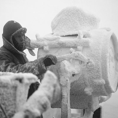 George Baker was Gun Captain on HMS Howe during the arctic convoys. He describes removing ice "up to eight inches thick" to "keep the guns and the ship in working order".