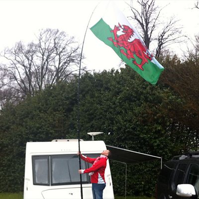 Mark Hutchings talks to rugby fans at a campsite in Cardiff who couldn't get tickets but say they are there "for the atmososphere".