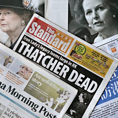 After her death at the age of 87, WHYS asks what personal impact Mrs Thatcher had on people around the world. (Image: Hong Kong newspapers pictured with images of late former British prime minister Margaret Thatcher. Credit: PHILIPPE LOPEZ/AFP/Getty Images)