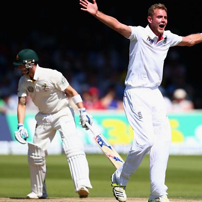 Australia's Michael Clarke out lbw to Stuart Broad