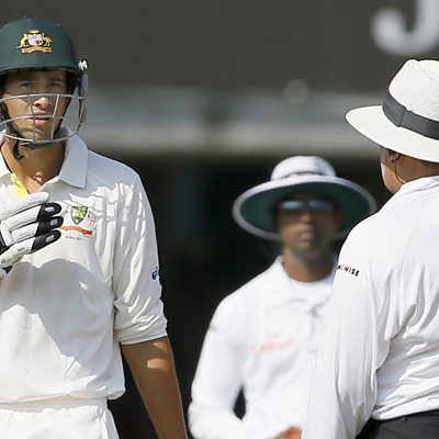 Australia's Ashton Agaris out for 16 on a successful review by England.