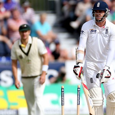 England's first innings ends with the wicket of Jimmy Anderson bowled by Jackson Bird.