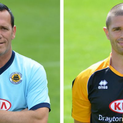 Boston United manager Dennis Greene and defender Scott Garner on the Pilgrims' 4-1 victory at Stockport County in Conference North