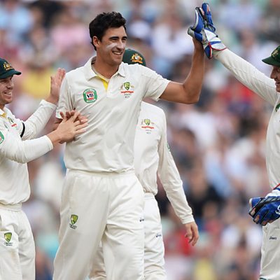 England's Stuart Broad falls to Mitchel Starc for 9.