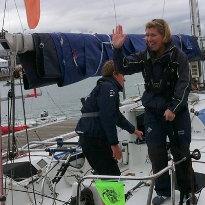 Sam Matson from the Artemis Academy takes Shelley sailing at the Southampton Boat Show