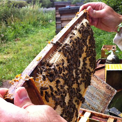 Earlier on this summer I had a call from a friend, Gavin Howling from Melton, who's a bee keeper, to come and help him collect a swarm of bees from Rothley in Charnwood. Since then we've been following the swarm as it settled into it's new home in Gavin's field. Today was harvest day....