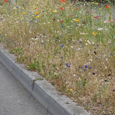 Trafodaeth am blannu blodau gwylltion ar ymylon ffyrdd.