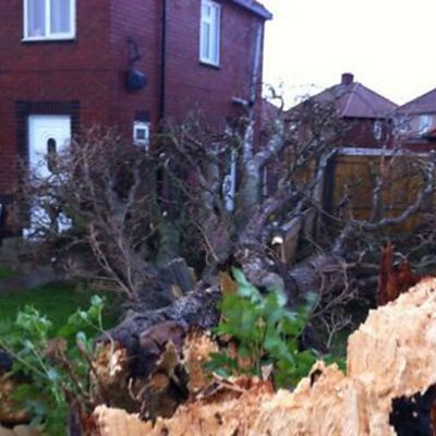 80 foot tree blown over in gales narrowly misses family home in Stockton.