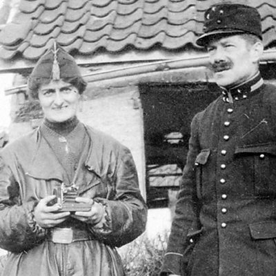 Elsie Knocker was a motorcyclist, a mother and one of the most famous women of the war. Born in Exeter, she lived and worked metres from the frontline in Belgium. With her friend Mairi Chisholm, she set up a first aid post in the cellar of a house in the village of Pervyse 17 miles north of Ypres. Their work so close to the battlefield was recognised internationally and they became celebrities of the conflict. Known increasingly as the women, angels and madonnas of Pervyse, they were probably the most photographed women of the war. This fame enabled them to return to Britain to raise funds to continue their frontline first aid. Elsie described their work in Exeter’s Barnfield Hall on 9th May 1916. She claimed £60/month ran their dug-out, base hut, two ambulance cars and one motor lorry. The Exeter audience collected £184 4s. Elsie worked in Pervyse until a gas attack in 1918 forced her back to Britain. She was awarded the military medal. Her work is remembered on film, in photos and in books. Will the angels of Pervyse also be commemorated in bronze outside the Belgian cellar where they worked? Location: Barnfield Theatre, Exeter, Devon EX1 1SN Image shows Elsie Knocker Photograph courtesy of Imperial War Museums