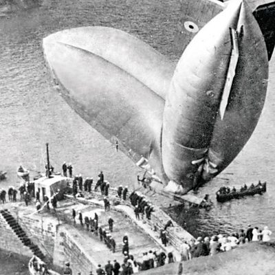RNAS Mullion was built on one of the highest points on the Lizard peninsula at Bonython on Goonhilly Downs. The site with its two vast hangars was strategically important; protruding into the Channel, it was a launch point for anti-submarine patrols along the Channel and West towards the Isles of Scilly. Two main types of airships were flown from RNAS Mullion including a Coastal Class known as C-class, as local historian, Pete London, explains: “The aircraft couldn't be taxied and were reliant on the ground handling crew. Teams of men would walk the airships around using rods connecting the airship with the ground. The crews faced long and exhausting missions as long as 20 hours from dawn until dusk. They were long and gruelling missions in cramped cockpits open to the cold air with no escape from the engine noise." "Flying was regarded as something outside the ordinary man's experience", said Frederick Verry. The memories of one of the airship pilots Frederick Verry were recorded for the archives of the Imperial War Museum in 1972. He was stationed at Mullion from 1917. "We would keep a watch on fishing fleets of which in my particular area there were considerable numbers and one would often come across perhaps thirty or forty fishing boats, fishing, and it was a useful exercise to keep a watch over them because there were recorded cases of submarines coming up on the surface and shelling the fishing fleets." Pete goes on to describe one astonishing incident involving Airship C-9: “The aircraft had been on patrol over the Channel Islands where despite its identity markings, British troops shot at it, perhaps mistaking the balloon for a Zeppelin.” Leaking its hydrogen gas, the punctured airship limped back towards the Cornwall coast just reaching Mullion Cove. Seriously deflated, the gondolier in which the crew sat was trailing in the water, its damaged balloon hanging above in a peculiar arch. An archive photograph shows locals gathering on the cliffs above to watch as the naval teams worked out how to deal with it. The airship was eventually manoeuvred back up the road by a gang of ratings carried back all the way from the harbour to the air station at the top of the hill. Airship C-9 was patched up and later back in operation. "While the airship patrols did not necessarily result in high numbers of German submarines being bombed, the real strength of the missions was to act as a strong deterrent”, says Pete. Their presence kept the German's heads down to allow vital convoys through. Location: RNAS Mullion, Bonython, Cornwall TR12 7BA Image of airships from RNAS Mullion patrolled to deter German submarines, the vast balloons looked out for Cornish fishing fleets Photograph courtesy of the Pete London collection
