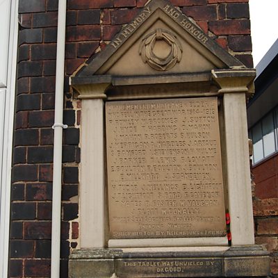 Following the erection of the Cenotaph in London, communities across the country wanted to follow suit and commemorate their lost loved ones with memorials. In Stoke-on-Trent, the fallen were remembered with plaques on the pubs, such as the former Dog & Partridge on Hot Lane in Burslem. These memorial plaques were paid for by members of the local community, often it’s claimed through pubs. They were made from materials ranging from wood to brass or even carved out of stone. Many were put on the side of pubs and list the names of locals who died in the war. By the 1960s, civic authorities in Stoke-on-Trent were regenerating areas and it’s said many of the memorial plaques were lost. We’ve been hearing about efforts being made in recent years to remember and conserve the ones which remain. Location: Hot Lane, Burslem, Stoke-on-Trent ST6 2BN Image shows the memorial plaque on the side of the former Dog and Partridge Pub in Burslem Presented by Allen Cook