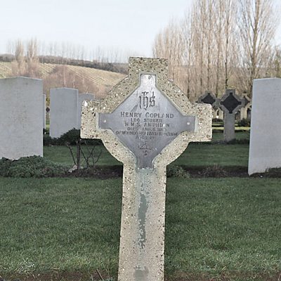 On the night of 5 August 1914, HMS Amphion was part of a flotilla of ships which set out from Harwich. They were told the German minelayer Königin Luise had been seen “throwing things overboard”. The flotilla chased and the Königin Luise was sunk. The Amphion picked up the 46 German survivors and continued on her search mission. At 06:30 the following morning, when on her way back to Harwich, the Amphion struck a mine laid by Königin Luise and began to sink, partly on fire. The official press bureau report says: “all efforts were therefore directed to placing the wounded in a place of safety in case of explosion and towards getting her a tow by the stern. By the time destroyers closed in it was clearly time to abandon ship. The men fell in with composure and 20 minutes after the mine struck, the men, officers and captain left their ship.” Minutes later she exploded and within 15 minutes had sunk completely. It resulted in 149 Commonwealth sailors being killed; two more died of their injuries in Shotley Hospital and are buried in Shotley Naval Churchyard. Nineteen of the German sailors who had been rescued from the Königin Luise also died. The following day Winston Churchill, the First Lord of the Admiralty, in the House of Commons said the Admiralty was saddened, but “not at all alarmed or disconcerted” by the incident. He used his speech to announce the creation of a Press Bureau to provide “a steady stream of trustworthy information… which, without endangering military or naval interests, will serve to keep the country properly and truthfully informed from day to day of what can be told, and what is fair and reasonable; and thus, by providing as much truth as possible, exclude the growth of irresponsible rumours.” Location: St Mary Naval Churchyard, Shotley IP9 1ES Image shows the churchyard today