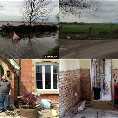 Large parts of the Somerset Levels spent much of the winter of 2013-14 under water. Villages were isolated, homes evacuated, the farming community in disarray and the bad weather relentless. 5 live reporter Sarah Ransome has been to meet builder Dave Branfield, seen here on the right, whose business is booming as a result of the weather, at James Winslade's farm where hundreds of cattle had to be evacuated. This clip is from 5 live Breakfast May 1 2014.
