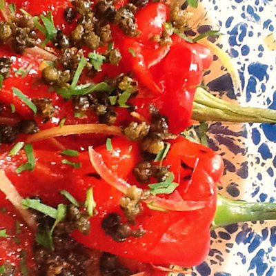Sam Clark cooks the perfect Tapas dish- grilled peppers with crispy capers